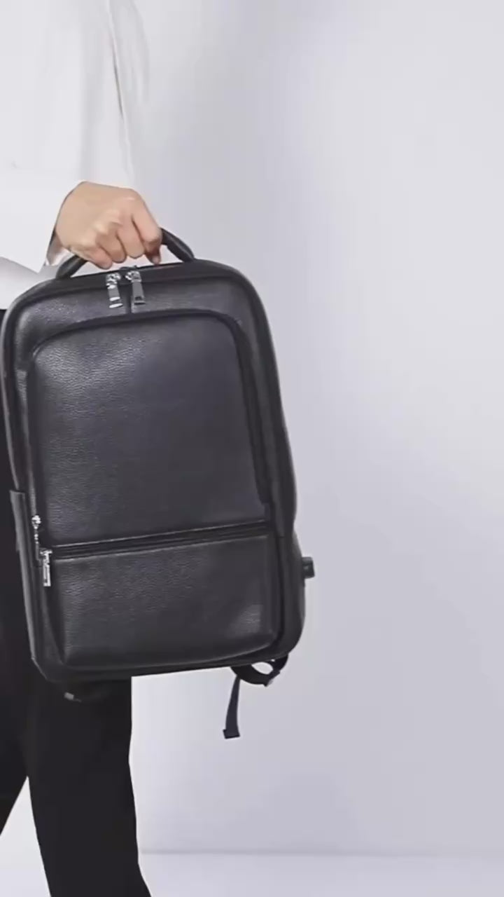 The Leather Executive Backpack T06 is meticulously crafted for the modern professional. Made from premium genuine leather, it delivers a refined aesthetic while offering intelligent design features. With a dedicated computer interlayer for laptops up to 16 inches and a range of interior pockets—including a slot, cell phone, zipper, and additional compartment—this backpack ensures seamless organisation and versatile capacity between 20-35L. Ideal for the daily commute or business travel, the T06 is where style meets practicality.